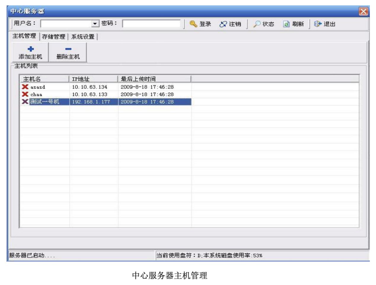 5.主機(jī)管理。對(duì)前端主機(jī)的維護(hù),包括增加、刪除和修改主機(jī)信息。查看主機(jī)和相機(jī)的連接狀態(tài)。