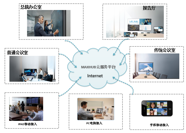 云會議是基于簡單互聯(lián)網(wǎng)架構(gòu)下的多方音視頻共享解決方案,超越了傳統(tǒng)的IM軟件,可實現(xiàn)重要數(shù)據(jù)內(nèi)容的同步共享;搭配高效會議平板,無需其他音視頻處理硬件和連線,可“一鍵”啟動遠程會議,支持Android、ios、mac、windows等移動端參會,隨時隨地加入會議。
