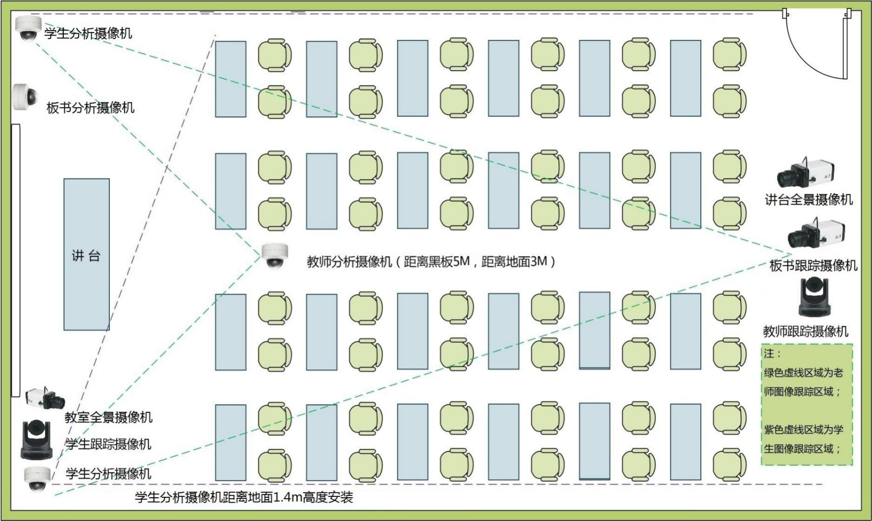 2)燈光對圖像拍攝的質(zhì)量影響十分重要,因此,建議在教師講臺(tái)區(qū)域正上方及講臺(tái)前方適量增加燈光。